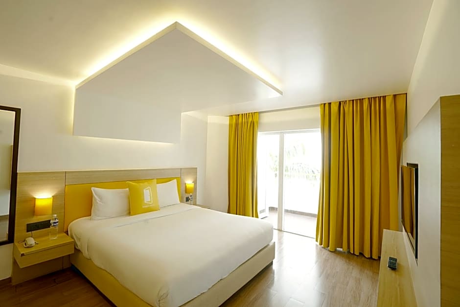 This double bedded room has a balcony, mini fridge, digital safe and tea/coffee maker.